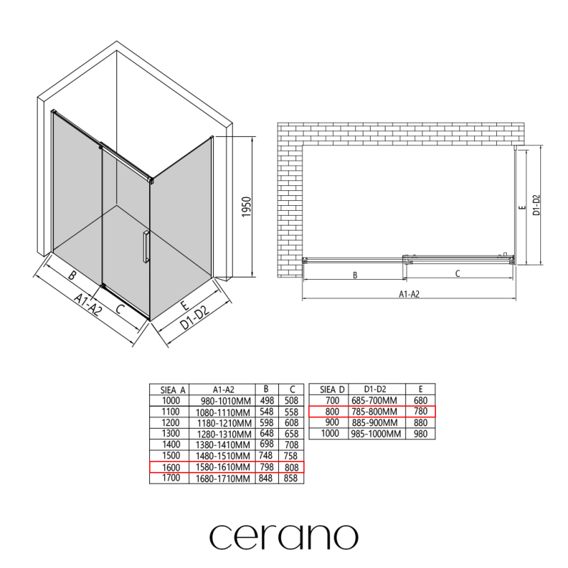 V rámci tejto série ponúkame širokú škálu rozmerov, aby sme uspokojili rôzne potreby našich zákazníkov. Všetky sprchové kúty, dvere a zásteny značky CERANO sú plne kompatibilné so sprchovými vaničkami CERANO v rovnakých rozmeroch, čo zaisťuje bezproblémovú inštaláciu a dokonalé zladenie. Sprchovací kút je možné navyše inštalovať flexibilne – buď na zodpovedajúcu sprchovú vaničku, alebo priamo na podlahu podľa vašich preferencií a možností kúpeľne.