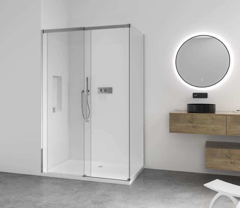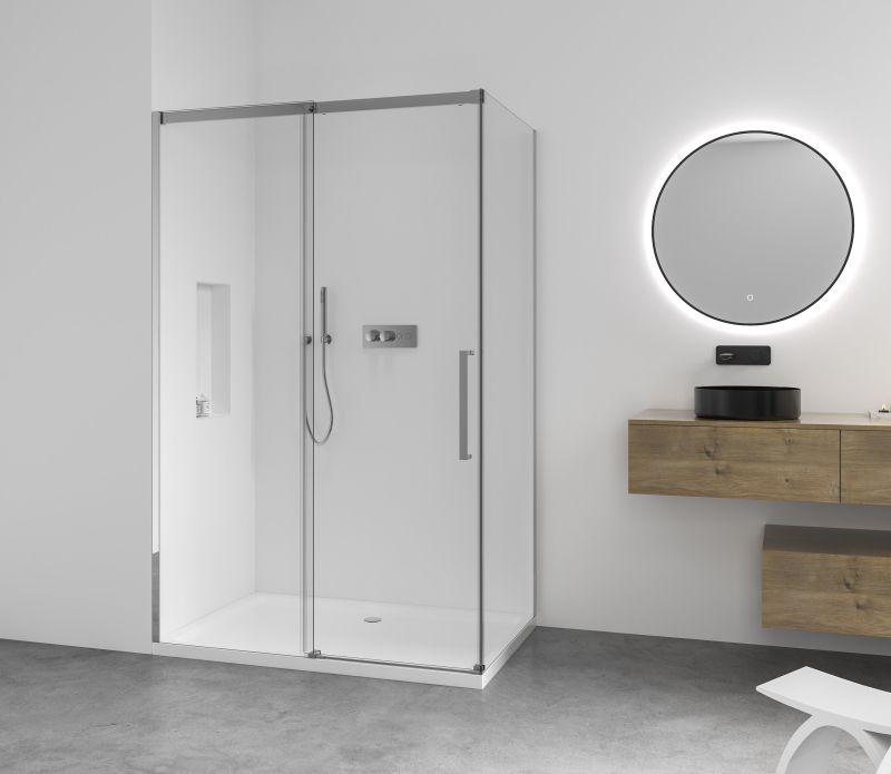 Posuvné dvere sprchového kúta fungujú na klznom mechanizme, ktorý umožňuje ich hladký pohyb po špeciálne navrhnutých koľajniciach. Vďaka tomu, že sa posúvajú pozdĺž steny, nevyžadujú žiadny dodatočný priestor na otváranie. Sú preto ideálnou voľbou pre kúpeľne s obmedzeným priestorom.