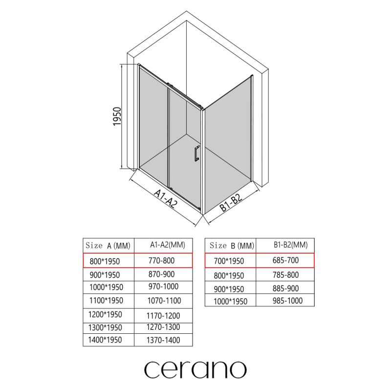 CERANO - Sprchovací kút Orlano Ľ/P - 5 mm - čierna matná, transparentné sklo - 80x70x195 cm - posuvný