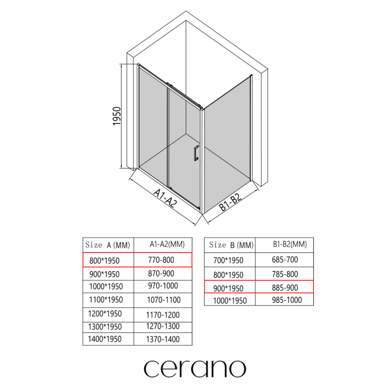 CERANO - Sprchovací kút Orlano L/P - 5 mm - chróm, transparentné sklo - 80x90x195 cm - posuvný