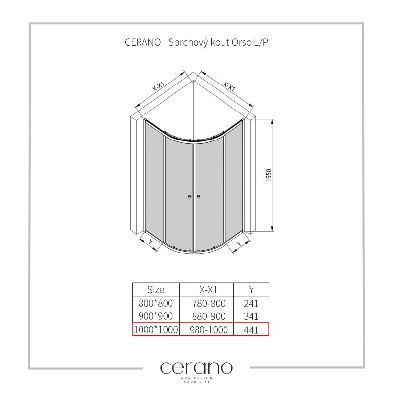 V rámci tejto série ponúkame tri osvedčené rozmery, ktoré zodpovedajú najčastejším požiadavkám na usporiadanie modernej kúpeľne. Tento rohový sprchovací kút je navrhnutý s dôrazom na dokonalé zladenie s polkruhovými sprchovými vaničkami CERANO rovnakého rozmeru, čo uľahčuje inštaláciu a vytvára jednotný, harmonický vzhľad. Vysoká kompatibilita zároveň eliminuje potrebu zložitých úprav alebo prispôsobení. Vďaka flexibilnej montáži ho môžete ľahko nainštalovať buď na zodpovedajúcu sprchovú vaničku, alebo priamo na pripravenú podlahu s odtokovým systémom - podľa vašich stavebných možností a estetických preferencií.