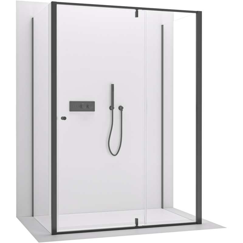CERANO - Trostenný sprchovací kút Santini UL/P - 6 mm - čierna matná, transparentné sklo - 100x80x195 cm - pivotový