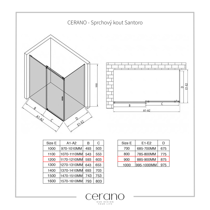 V rámci této série nabízíme širokou škálu rozměrů, abychom uspokojili různé potřeby našich zákazníků. Všechny sprchové kouty, dveře a zástěny značky CERANO jsou plně kompatibilní se sprchovými vaničkami CERANO ve stejných rozměrech, což zajišťuje bezproblémovou instalaci a dokonalé sladění. Sprchový kout lze navíc instalovat flexibilně – buď na odpovídající sprchovou vaničku, nebo přímo na podlahu podle vašich preferencí a možností koupelny.