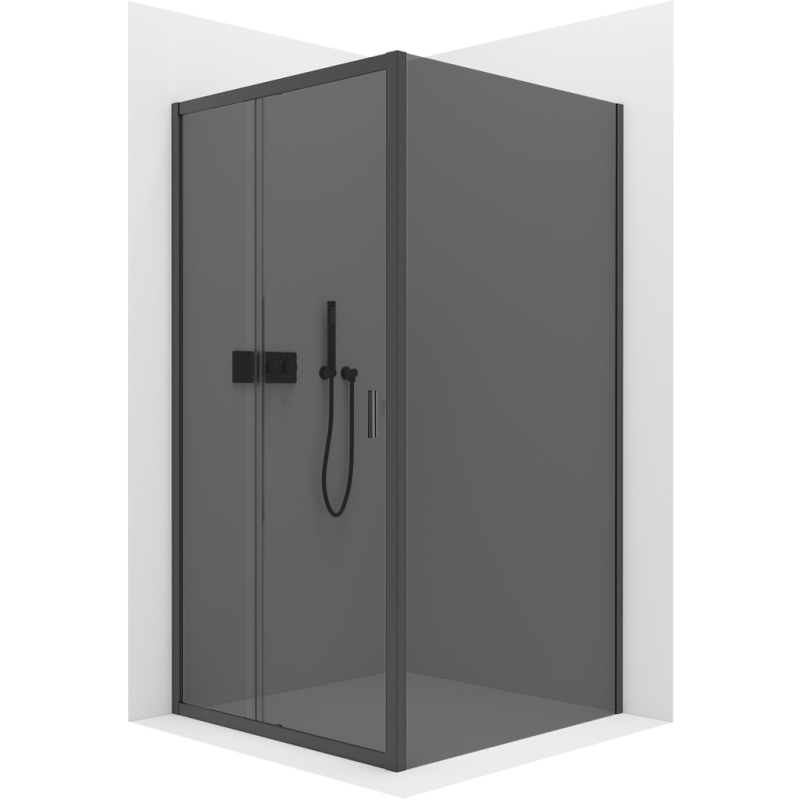 CERANO - Sprchovací kút Varone LINE Ľ/P - 6 mm - čierna matná, grafitové sklo - 110x90x195 cm - posuvný