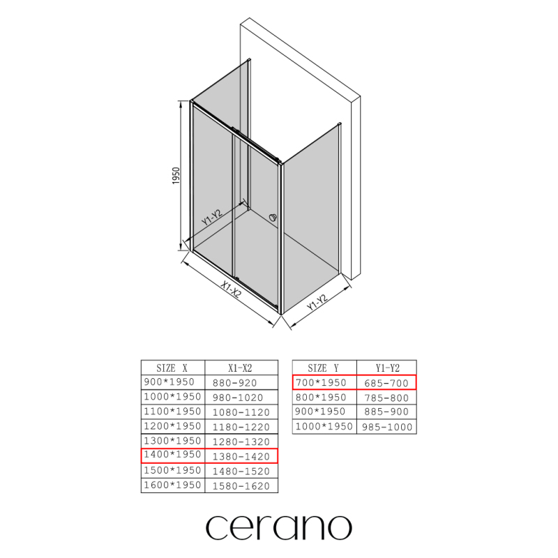 Niektoré zásteny značky CERANO je možné kombinovať s dverami z inej série, ale vo všeobecnosti to neodporúčame.