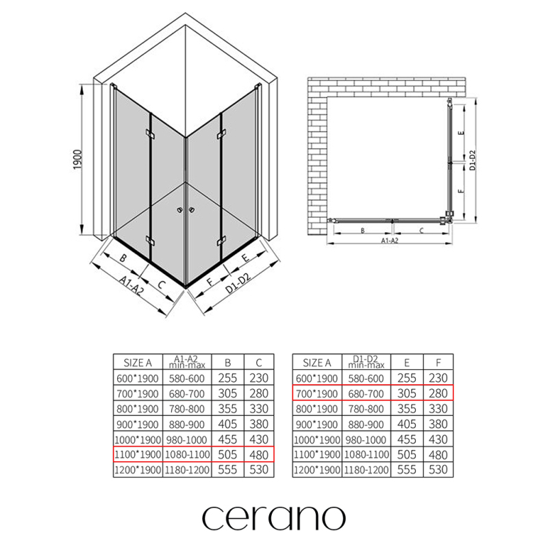 V rámci tejto série ponúkame širokú škálu rozmerov, aby sme uspokojili rôzne potreby našich zákazníkov. Všetky sprchové kúty, dvere a zásteny značky Cerano sú plne kompatibilné so sprchovými vaničkami Cerano v rovnakých rozmeroch, čo zaisťuje bezproblémovú inštaláciu a dokonalé zladenie. Sprchovací kút je možné navyše inštalovať flexibilne – buď na zodpovedajúcu sprchovú vaničku, alebo priamo na podlahu podľa vašich preferencií a možností kúpeľne.