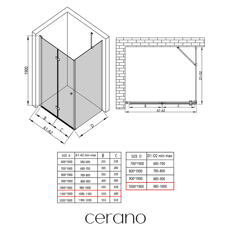 V rámci tejto série ponúkame širokú škálu rozmerov, aby sme uspokojili rôzne potreby našich zákazníkov. Všetky sprchové kúty, dvere a zásteny značky Cerano sú plne kompatibilné so sprchovými vaničkami Cerano v rovnakých rozmeroch, čo zaisťuje bezproblémovú inštaláciu a dokonalé zladenie. Sprchovací kút je možné navyše inštalovať flexibilne – buď na zodpovedajúcu sprchovú vaničku, alebo priamo na podlahu podľa vašich preferencií a možností kúpeľne.