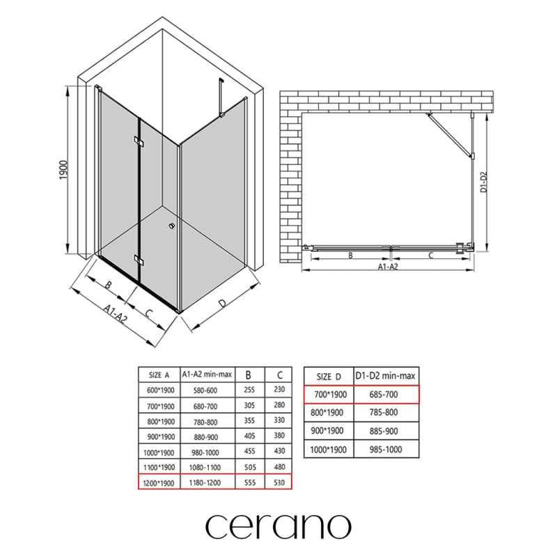 V rámci tejto série ponúkame širokú škálu rozmerov, aby sme uspokojili rôzne potreby našich zákazníkov. Všetky sprchové kúty, dvere a zásteny značky Cerano sú plne kompatibilné so sprchovými vaničkami Cerano v rovnakých rozmeroch, čo zaisťuje bezproblémovú inštaláciu a dokonalé zladenie. Sprchovací kút je možné navyše inštalovať flexibilne – buď na zodpovedajúcu sprchovú vaničku, alebo priamo na podlahu podľa vašich preferencií a možností kúpeľne.