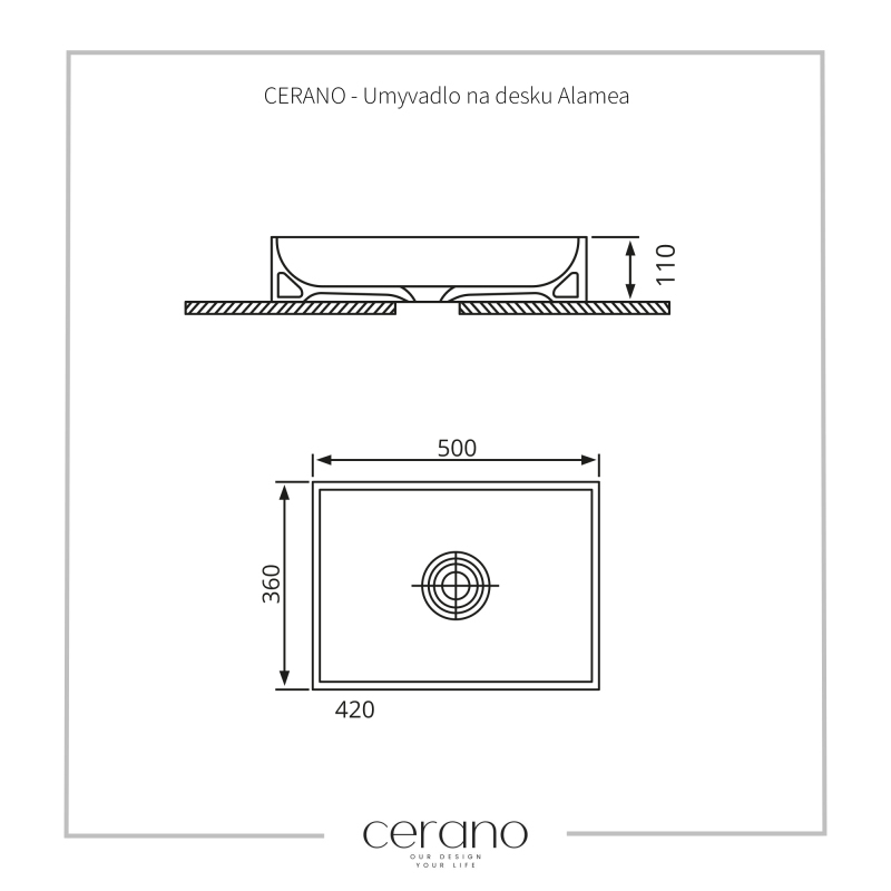 CERANO - Umývadlo keramické Alamea - na dosku - biela lesklá - 50x36 cm