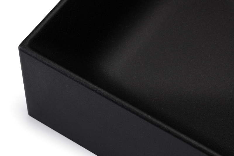 Čierna farba s matnou povrchovou úpravou je veľmi originálna. V našej ponuke je však k dispozícii umývadlo Lacerta aj v bielej variante, taktiež s matnou povrchovou úpravou. Obdĺžnikový tvar s vyšším okrajom zaisťuje skvelý odtok vody a bráni kvapkám vody, aby znehodnocovali podkladovú dosku. Odtokový otvor disponuje krytkou, ktorá zabraňuje šíreniu prípadného zápachu z odtoku a udržuje tak vašu kúpeľňu v maximálnom hygienickom stave.