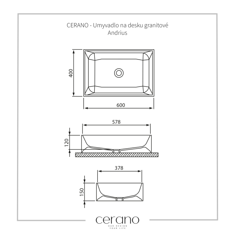 Umývadlo na dosku Lacerta značky Cerano je viac než len bežným kúpeľňovým prvkom. Je to elegantný a praktický doplnok, ktorý zvýrazní krásu a funkčnosť vašej kúpeľne.