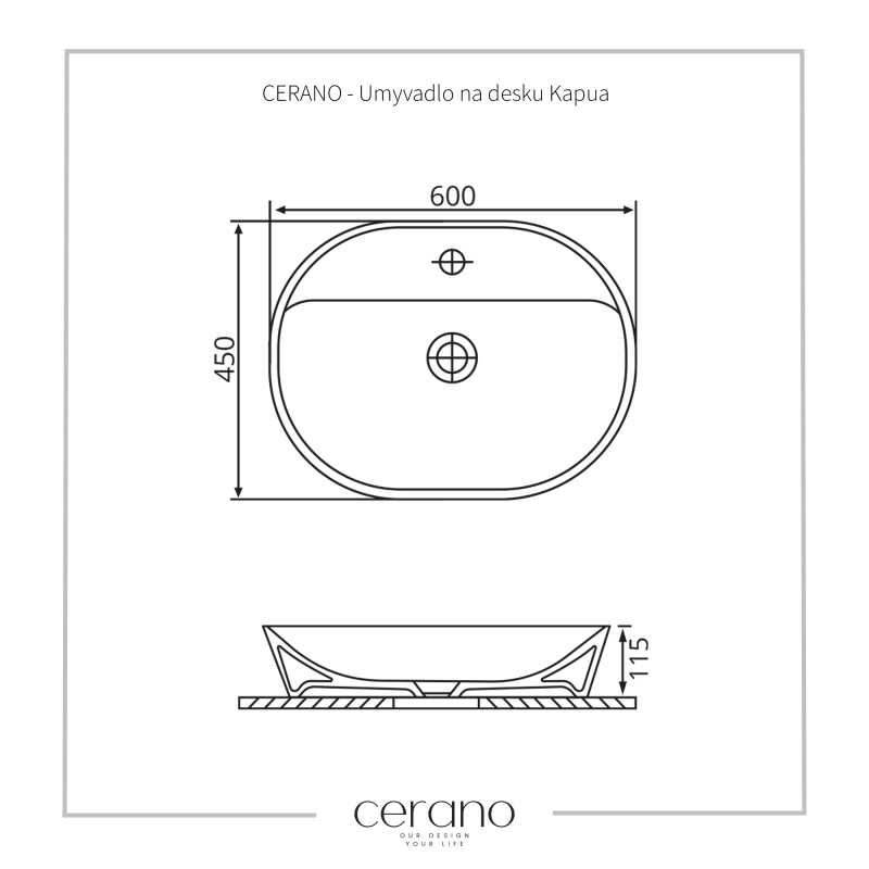 CERANO - Umývadlo keramické Kapua - na dosku - biela lesklá - 60x45 cm