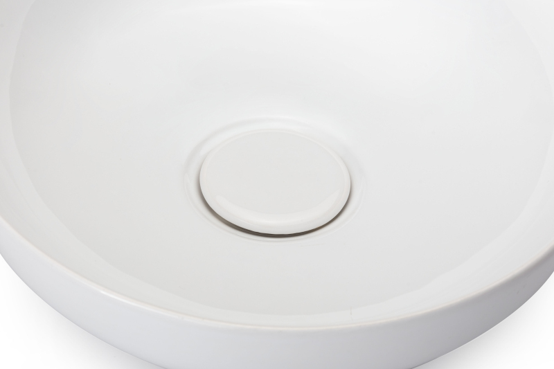 Súčasťou umývadla je aj keramická zátka , ktorá nielen skvele dopĺňa celkový vzhľad, ale taktiež zaisťuje plynulý odtok vody a minimalizuje prítomnosť nepríjemných pachov. Veľkou výhodou je ľahké čistenie a vysoká odolnosť voči najrôznejším čistiacim prostriedkom a chemikáliám.