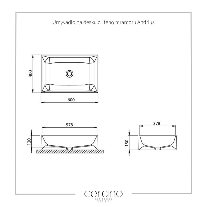 Umývadlo na dosku Lacerta značky Cerano je viac než len bežným kúpeľňovým prvkom. Je to elegantný a praktický doplnok, ktorý zvýrazní krásu a funkčnosť vašej kúpeľne.