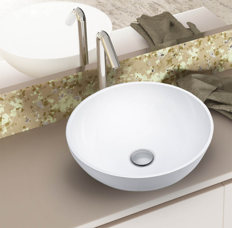 CERANO - Umývadlo z liateho mramoru Darius - na dosku - biela lesklá - ø 40 cm