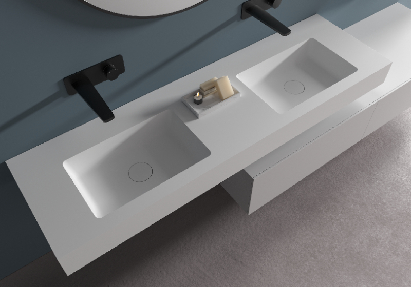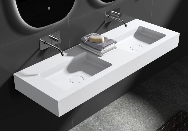 Umývadlá z liateho mramoru sú dodávané bez otvoru pre batériu. V prípade potreby si ho môžete jednoducho zhotoviť sami – napríklad vyvŕtaním. Vďaka tomu máte možnosť zvoliť si umiestnenie a typ batérie podľa vlastných predstáv.