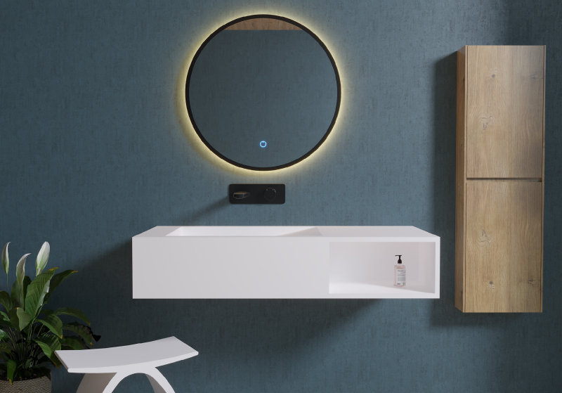 Umývadlá z liateho mramoru sú dodávané bez otvoru pre batériu. V prípade potreby si ho môžete jednoducho zhotoviť sami – napríklad vyvŕtaním. Vďaka tomu máte možnosť zvoliť si umiestnenie a typ batérie podľa vlastných predstáv.
