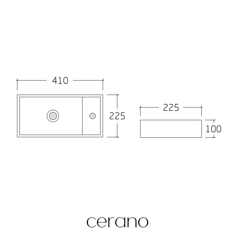 CERANO - Umývadlo keramické Giovanni, závesné pravé - biela lesklá - 41x22,5 cm