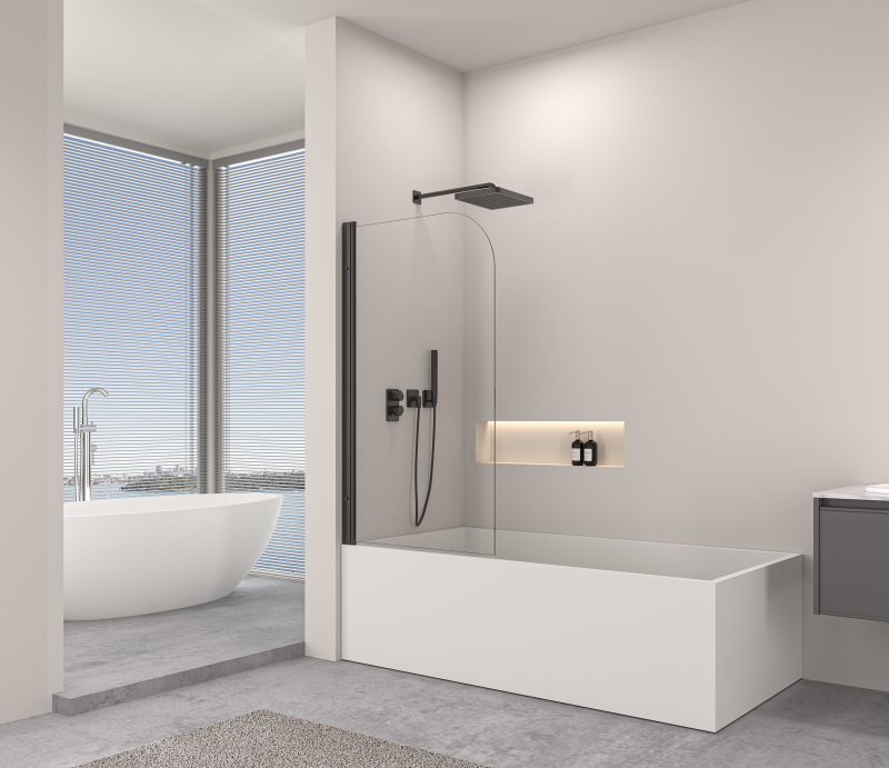 Transparentné sklo s hrúbkou 6 mm dodáva kúpeľni vzdušný a moderný vzhľad, zároveň prepúšťa dostatok svetla do priestoru. Stenový profil zaisťuje nenásilný kontrast k transparentnému sklu a dodáva vaňovej zástene moderný a sofistikovaný vzhľad. Tento štýlový prvok dokonale ladí s rôznymi designami kúpeľní.