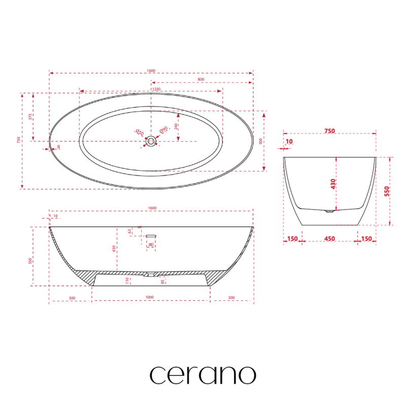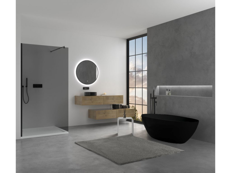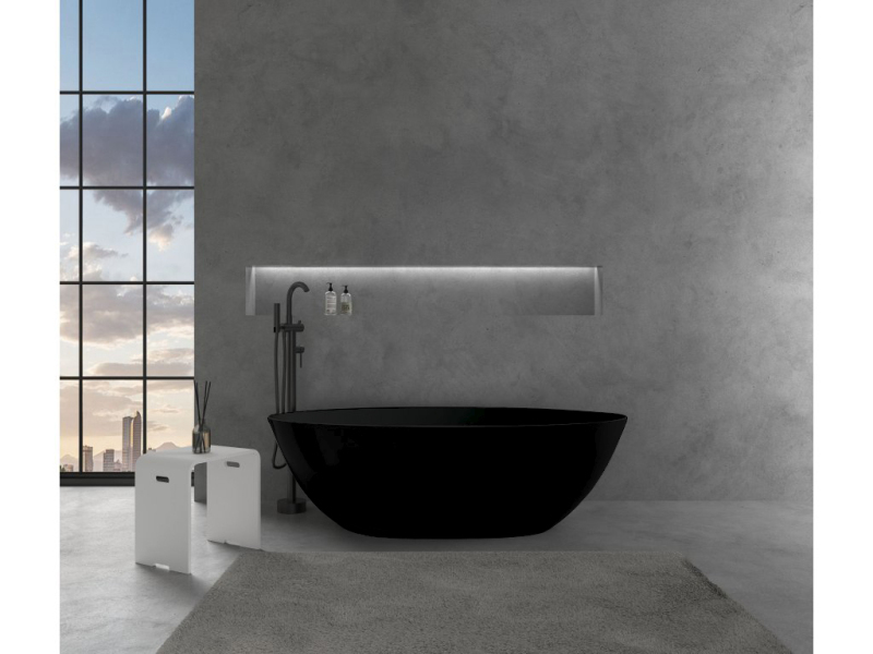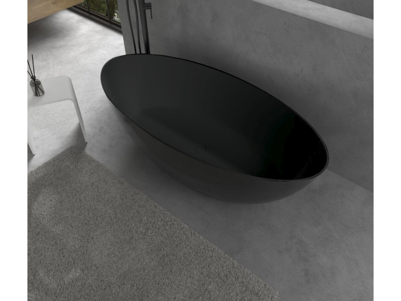 CERANO - Voľne stojaca vaňa z liateho mramoru Emilia - čierna matná - 160x75cm