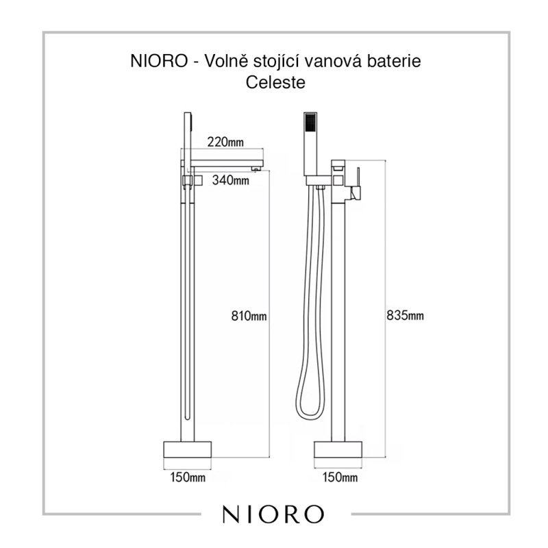 NIORO - Vaňová batéria voľne stojaca Celeste - čierna matná