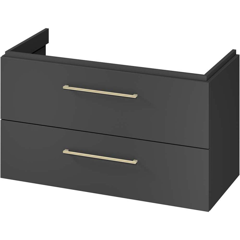 Skrinka pod umývadlo z kolekcie Larga v antracitovej farbe, veľkosť 100. Predná časť a korpus sú vyrobené z kvalitnej drevotriesky, povrchovo upravené elegantným antracitovým lakom. Skrinka je vybavená dvoma priestrannými zásuvkami, ktoré ponúkajú dostatok priestoru na uloženie kozmetiky, uterákov a kúpeľňových doplnkov. Ich interiéry sú vyvedené v elegantnej šedej, harmonicky s antracitovou prednou časťou a vytvárajú esteticky súdržný celok. Systém soft-close zaisťuje jemné a tiché dovieranie zásuviek, čo zvyšuje pohodlie. Výrazným prvkom skrine je frézované madlo, ktoré podčiarkuje jej minimalistický štýl. Táto rukoväť je k dispozícii v troch farbách – striebornej, zlatej a čiernej – čo vám umožní personalizovať jednotku a zladiť ju s ostatným vybavením kúpeľne. Rukoväť je nutné zakúpiť samostatne. Doska, z ktorej je skriňa vyrobená, má certifikáciu FSC MIX CREDIT SGSCH-COC-007574.