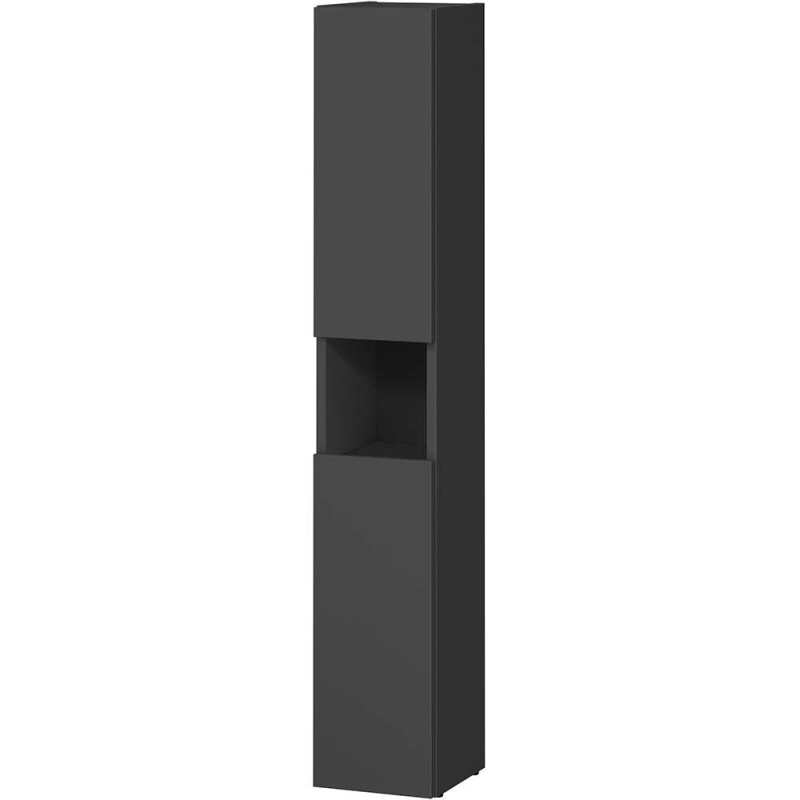 Modulárna spodná skrinka pre vstavané nábytkové rámy z kolekcie Larga v antracitovej farbe je elegantný a funkčný kus nábytku, ktorý umožňuje vytvárať s rámom najrôznejšie aranžmány. Skriňa je vyrobená z lakovanej drevotriesky. Skrinka má jednu otvorenú policu, ktorá poskytuje pohodlné uloženie drobného príslušenstva, ako je toaletný papier, a dve skrinky s dvierkami hore a dole. Dvere tejto skrine boli navrhnuté tak, aby eliminovali potrebu ďalších úchytov. V hornej časti je jedna polica z nábytkovej dosky. Systém mäkkého zatvárania zaisťuje jemné a tiché zatváranie dverí, čo zvyšuje komfort. Materiál, z ktorého je skriňa vyrobená, má certifikáciu FSC MIX CREDIT SGSCH-COC-007574, čo znamená, že pochádzal z udržateľných zdrojov v súlade so zásadami zodpovedného lesného hospodárstva. Vďaka tomu je výrobok nielen esteticky príjemný a praktický, ale aj šetrný k životnému prostrediu.