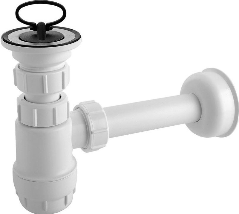 Sifón drezu na fľaše kompatibilný s mnohými typmi drezov. Nerezové sitko zaisťuje dlhú životnosť. Gumová zátka zaručuje vysokú tesnosť.