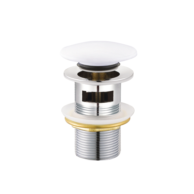 Biela keramická zátka s konvexným hríbovitým tvarom, mechanizmus je vyrobený z odolnej mosadze a opatrený silikónovým tesnením. Tento elegantný dizajn je taktiež vodotesný a spoľahlivý.