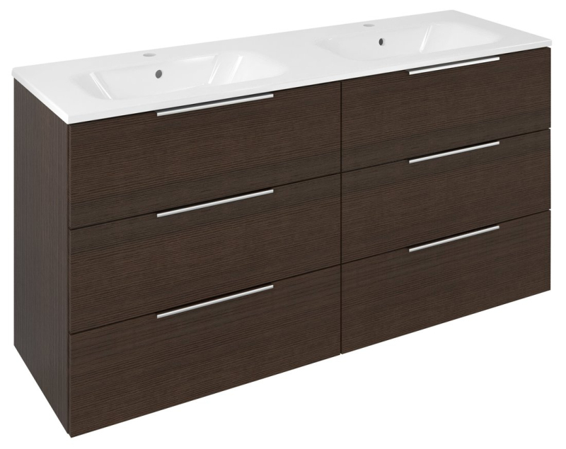 CIRASA umývadlová skrinka s dvojumývadlom 141x77x46cm, 3x zásuvka, borovica rustik