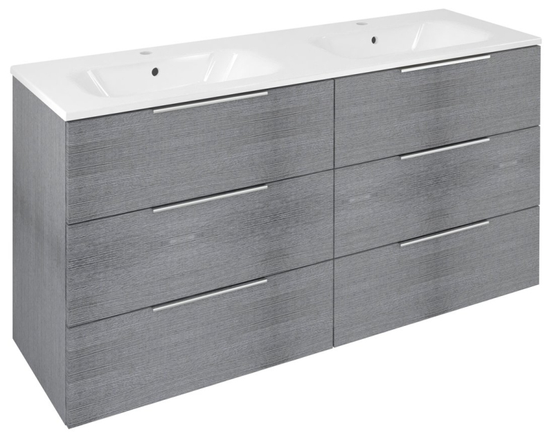 CIRASA umývadlová skrinka s dvojumývadlom 141x77x46cm, 3x zásuvka, dub strieborný