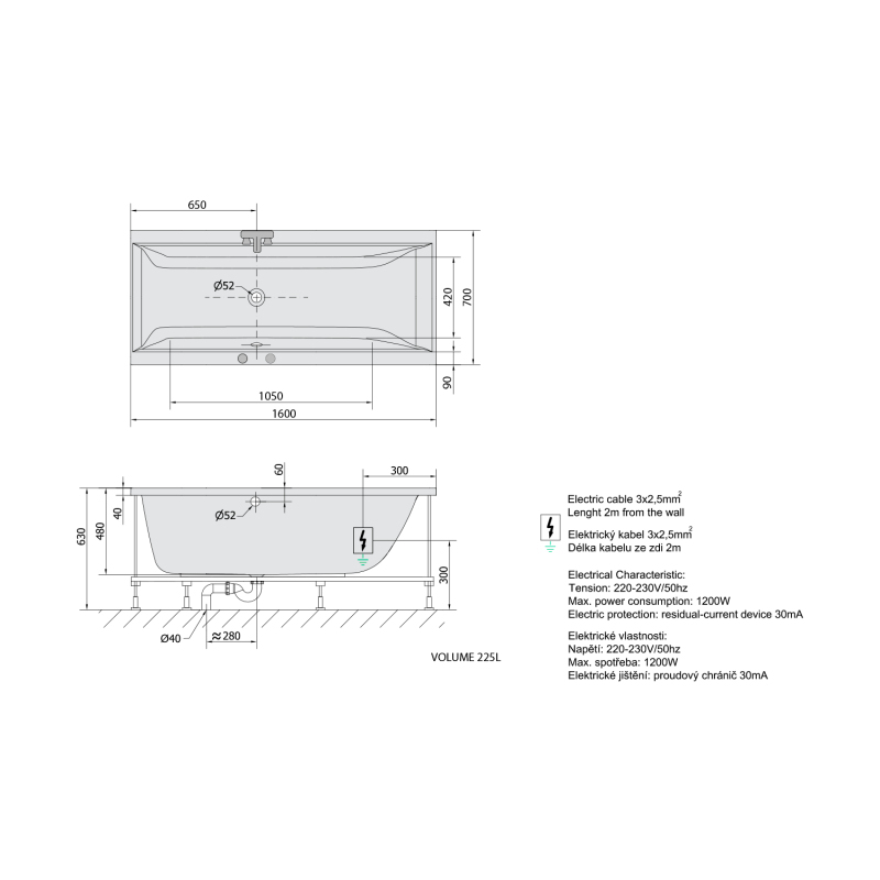 CLEO hydromasážna vaňa, 160x70x48cm, Attraction Hydro-Air, chróm 56893