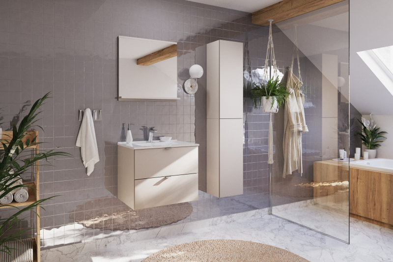 Szafka wysoka jednodrzwiowa z kolekcji Dalia Cashmere to kwintesencja minimalistycznego štýlu . atmosfére.