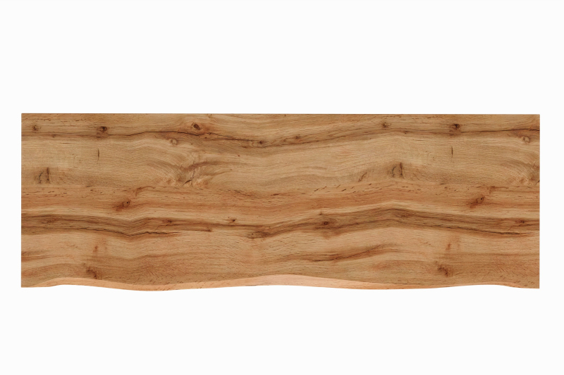 Blat 140 cm z kolekcie Nature to propozycja inspirowana prawdziwym drewnom - jego nieregularna, lekko falowana krawędź imituje naturalnie cięty kawałiek drewna, nadając wnetrzu autentyczny i przytulny klímy. Wykończenie w dekorzie Dąb Wotan z mocno zarysowanym usłojením aj kontrastowymi tonami dodajú całości głębi i wyrazistości. Blat został zaprojektowany z myseľ o szafkach pod umywalkę o głębokości 46 cm , z którymi tworzy spójne i funkcjonalne zestawienie, a wykonanie z płty MDF i fóliu PVC zapewnia estetyczny