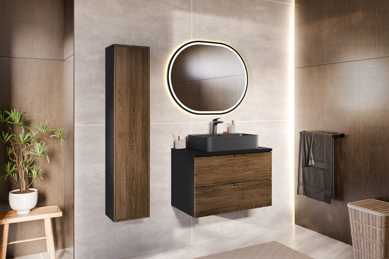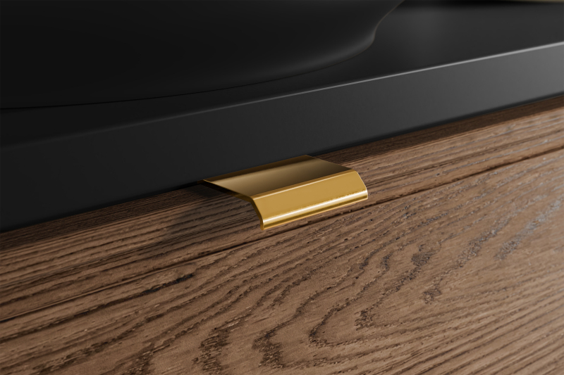 Szafka pod umywalkę 80cm z dwiema szufladami z kolekcji Talia Casella łączy klasyczną elegancję z nowoczesnym štýlom. Casella doskonale odwzorowuje naturalne piękno drewna, wprowadzając do wnětrza ciepło i harmonie. umywalkę dzięki trhom kolorom uchwytów w komplécie - złoty połysk, chróm połysk oraz czarny mat, čo pozwala na dopasowanie mebli do indywidualnych preferencji.