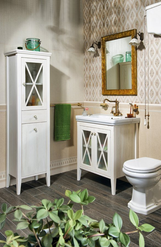 CROSS skrinka vysoká s práčovným košom 49x170x39cm, pravá, starobiela CR215