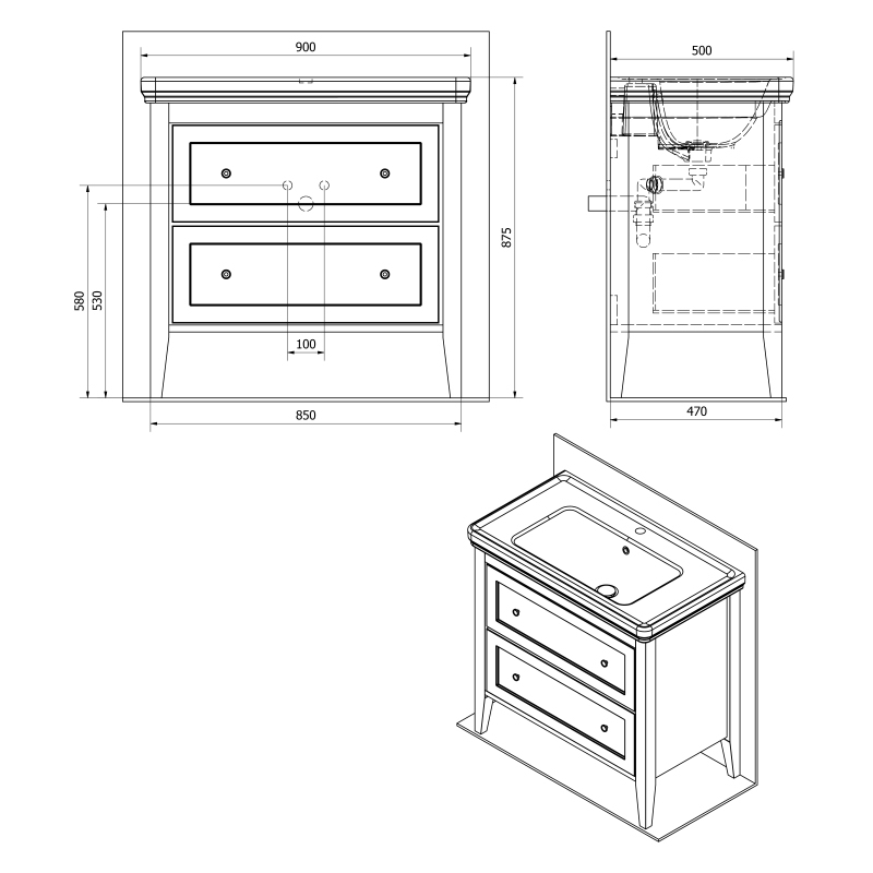 CROSS umývadlová skrinka 85x81x47cm, 2x zásuvka, starobiela CR291
