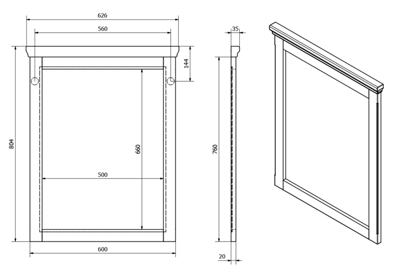 CROSS zrkadlo v drevenom ráme 600x800mm, starobiela CR211