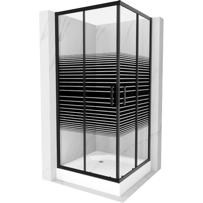 Čtvercový sprchový kout Mexen Rio 90 x 90 cm, černé pruhy, černá + sprchová vanička Rio, bílá - 860-090-090-70-20-4510