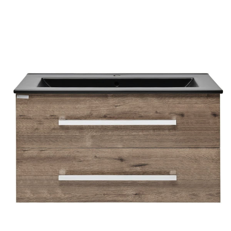 Závesná kúpeľňová skrinka s keramickým umývadlom v prevedení dub wellington s matným povrchom o rozmere 100x53x46 cm. Povrch v prevedení lamino.