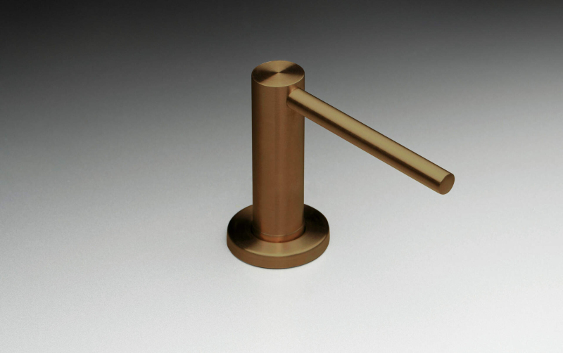 Dávkovač umývacieho prostriedku je zariadenie, ktoré výrazne uľahčuje prácu v kuchyni. Nádoba je vyrobená z plastu a má objem 500 ml, zatiaľ čo výpusť je vyrobená z kartáčovaného bronzu a je dlhá 75 mm. Dávkovač je možné namontovať pod drez alebo voliteľne do pracovnej dosky vedľa drezu. Prvá možnosť umožňuje použiť hotový otvor v dreze. Pokiaľ žiadny nie je k dispozícii, môžete si ho vytvoriť sami – vo vyfrézovanej oblasti v žulovom dreze (ak je k dispozícii) alebo v oceľovom dreze – kdekoľvek pomocou špeciálneho zariadenia na rezanie otvorov.