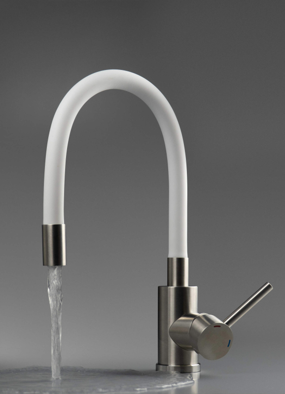 Deante LUNO drezová batéria s flexibilným ramienkom, oceľ-biela BOC_W720