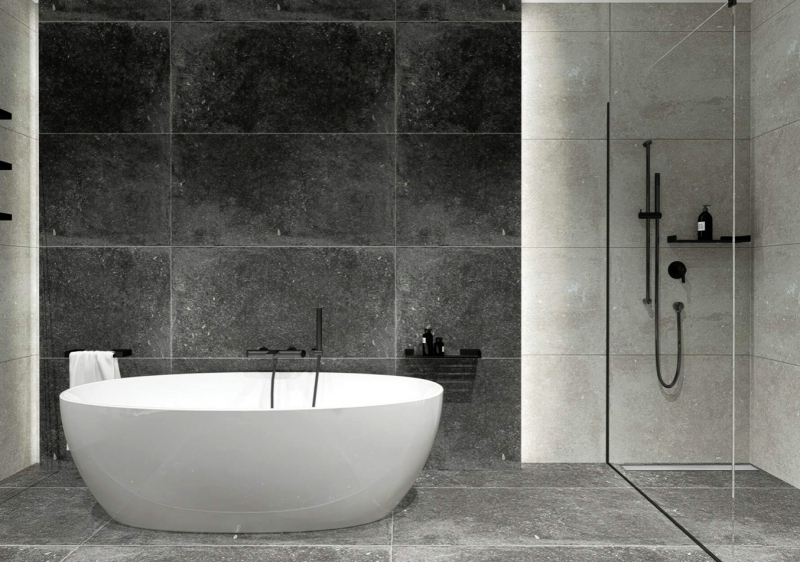Saténovo čierne doplnky z radu Nero veľmi efektne harmonizujú s čiernym kovaním, hladkými obkladmi do kúpeľne, drevenými alebo kamennými doskami.