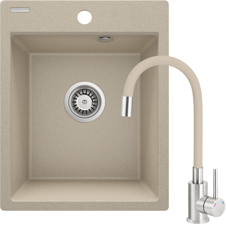 Deante set: granitový drez piesková + drezová batéria, oceľ-béžová + príslušenstvo ZRCP7103