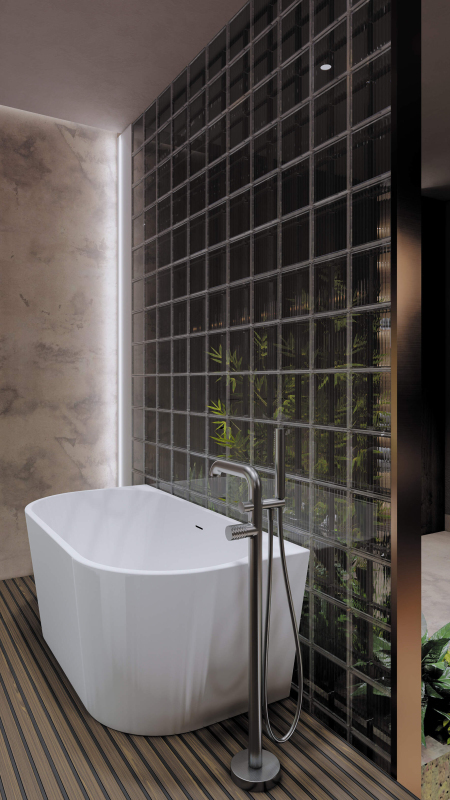 Deante SILIA HEXA stojanková vaňová batéria so sprchovou sadou, oceľ BHS_F17M