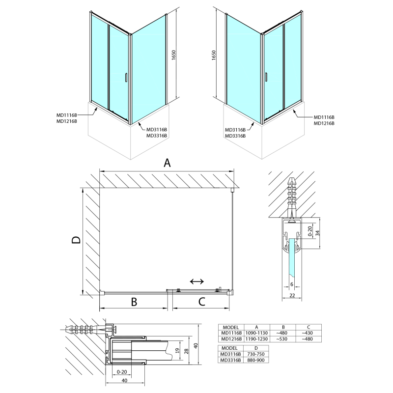DEEP BLACK obdĺžnikový sprchovací kút 1100x900mm L/P variant, číre sklo 57872