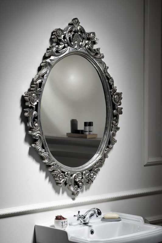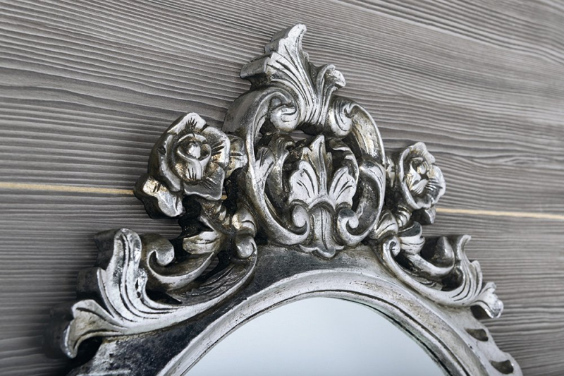 DESNA oválne zrkadlo vo vyrezávanom ráme, 80x100cm, strieborná IN344