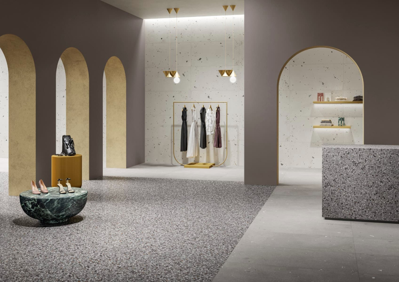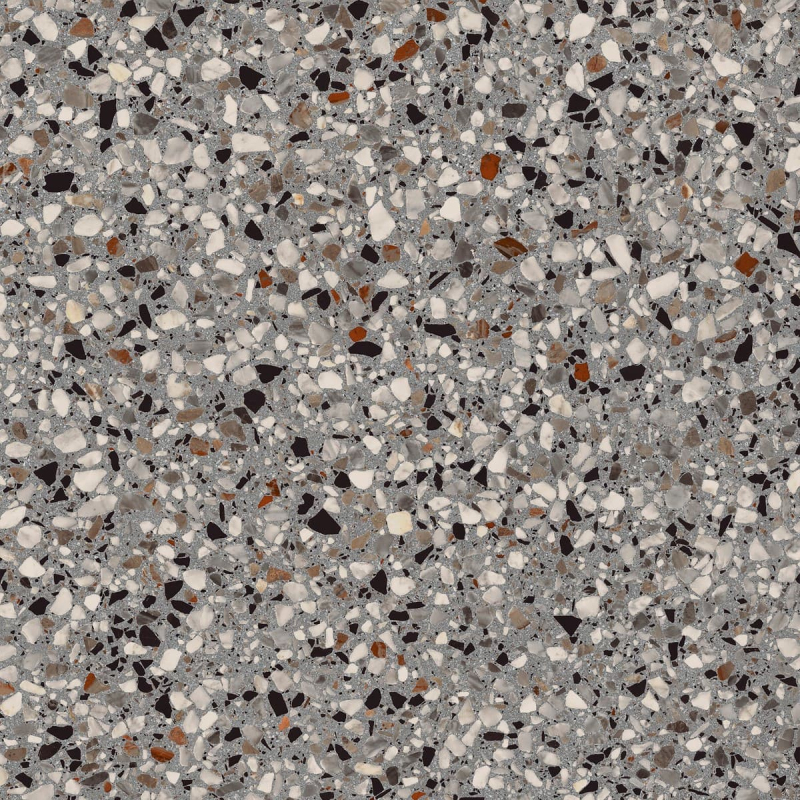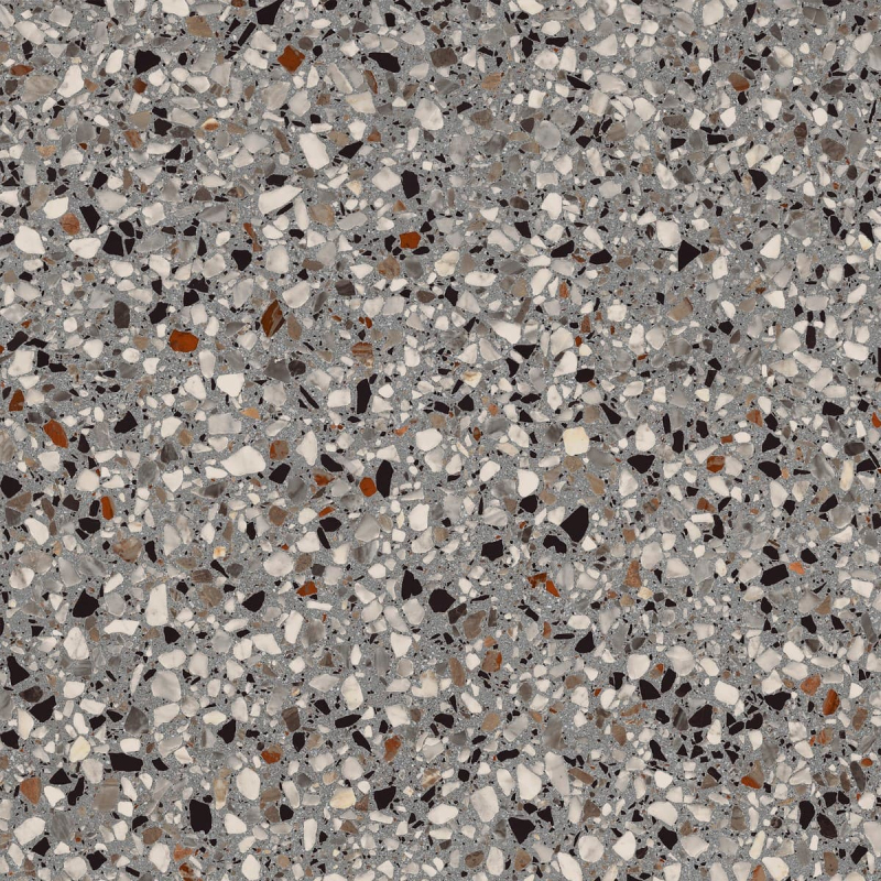 Rektifikované. Mrazuvzdorné. Dlažba vo farebnom prevedení lead av terrazzo designe o rozmere 59,5x59,5 cm a hrúbke 10 mm s matným povrchom. Vhodné do interiéru aj exteriéru. S malými rozdielmi v odtieni farieb, štruktúry povrchu a kresby. Vhodné do kuchyne, kancelárií, na balkóny.