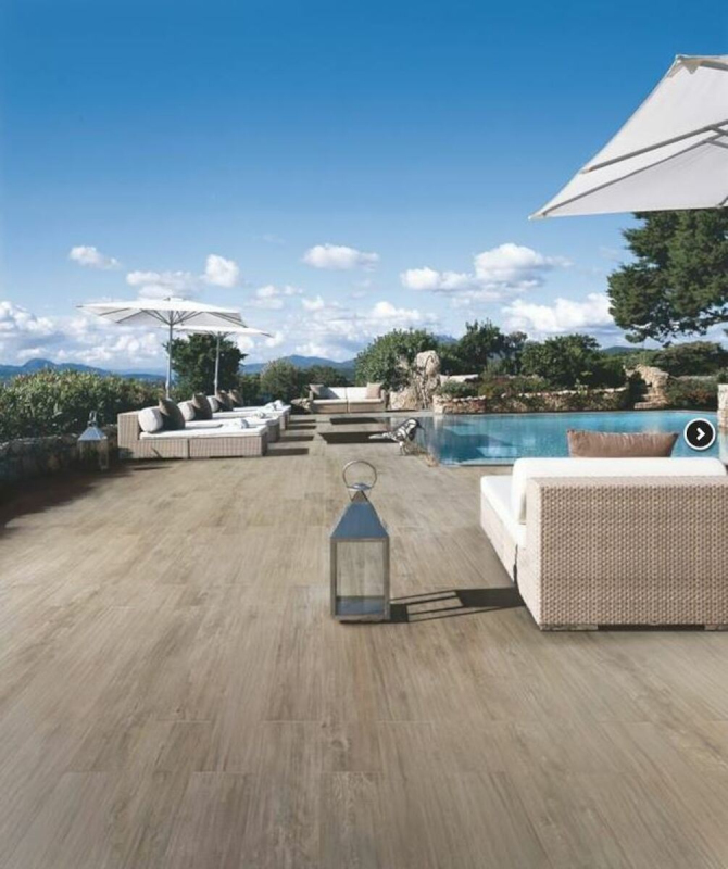 Mrazuvzdorná a rektifikovaná dlažba v šedej farbe v imitácii dreva o rozmere 16,4x99,8 cm a hrúbke 10,5 mm s matným povrchom. Vhodné do interiéru aj exteriéru. Vysoko odolné proti opotrebovaniu. Vhodné do hál hotelov, obchodov a garáže.