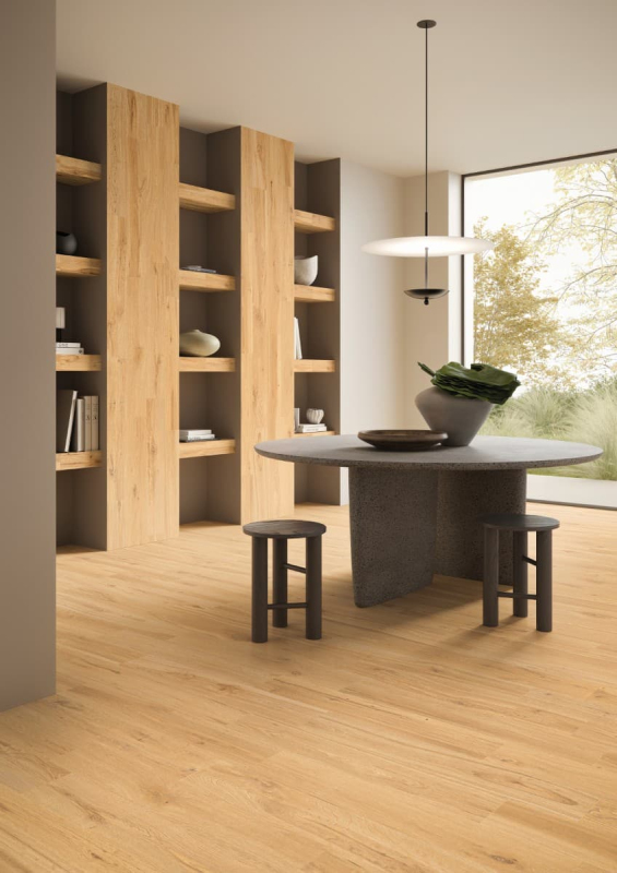Rektifikované. Mrazuvzdorné. Dlažba vo farebnom prevedení pure av imitácii dreva o rozmere 19,7x119,5 cm a hrúbke 9 mm s matným povrchom. Vhodné do interiéru aj exteriéru. S veľkými rozdielmi v odtieni farieb, štruktúry povrchu a kresby. Vysoko odolné proti opotrebovaniu. Vhodné do hál hotelov, obchodov a garáže.